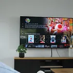 Diese Villa bietet einen Blick auf den Garten und ist mit einem Flachbildfernseher mit Satellitenkanälen ausgestattet.